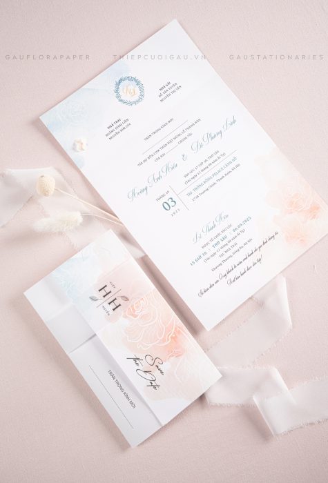 Mô tả: Thiệp cưới 1 lớp gập 3 kèm 1 đai can