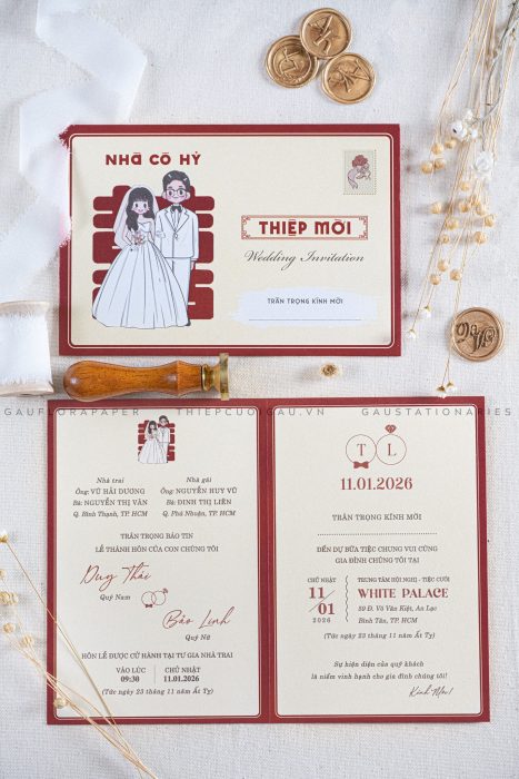 Cô dâu chú rể chuẩn bị in thiệp cưới có thể đến cửa hàng xem mẫu thiệp đặt hàng online để tiết kiệm hơn. Liên hệ hotline/Zalo: 0911 029 666 để tư vấn.