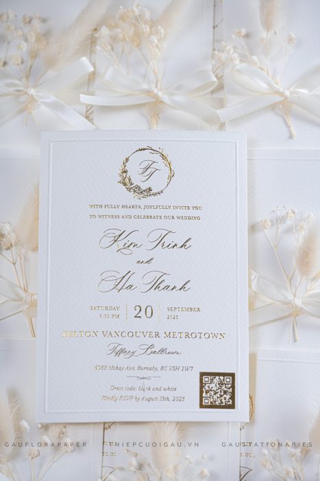 Thiệp Lase White là sự tinh sảo của nghệ thuật kết hợp giấy và các phụ kiện giấy. Điểm nhấn là một nhành hoa khô đã tạo nên vũ điệu độc đáo trên những gam màu.